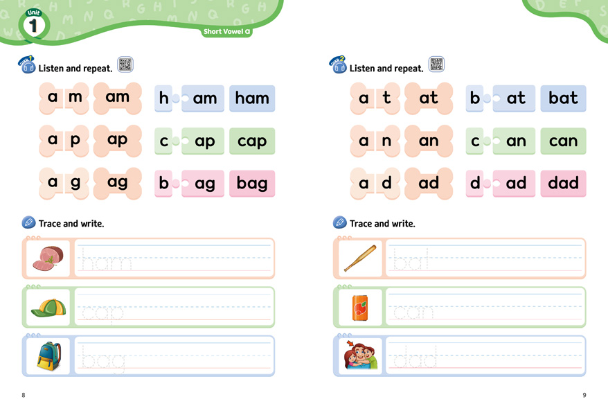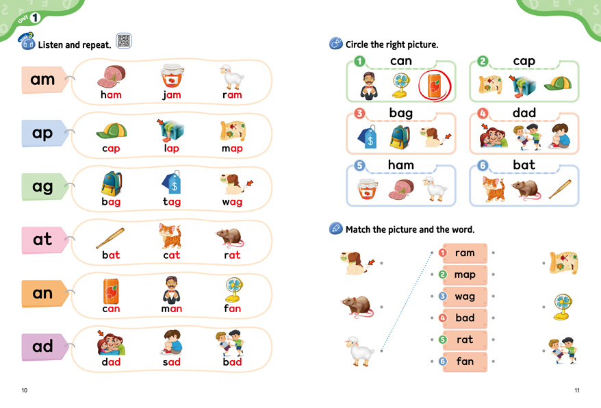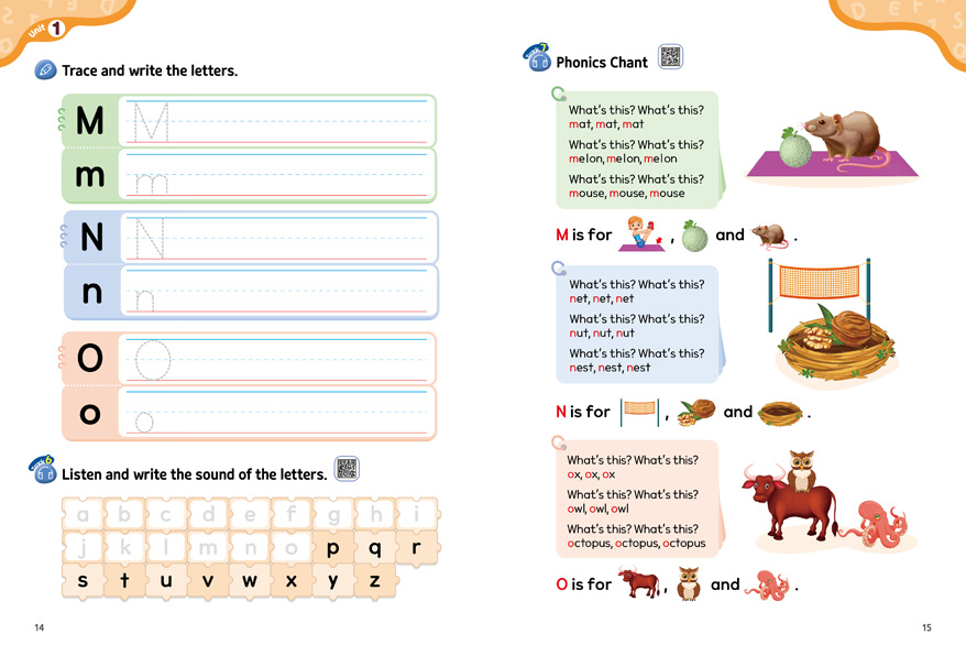 리듬감있는 챈트와 다양한 액티비티를 통하여 더욱 쉽고 재미있게 파닉스를 익힐 수 있습니다.